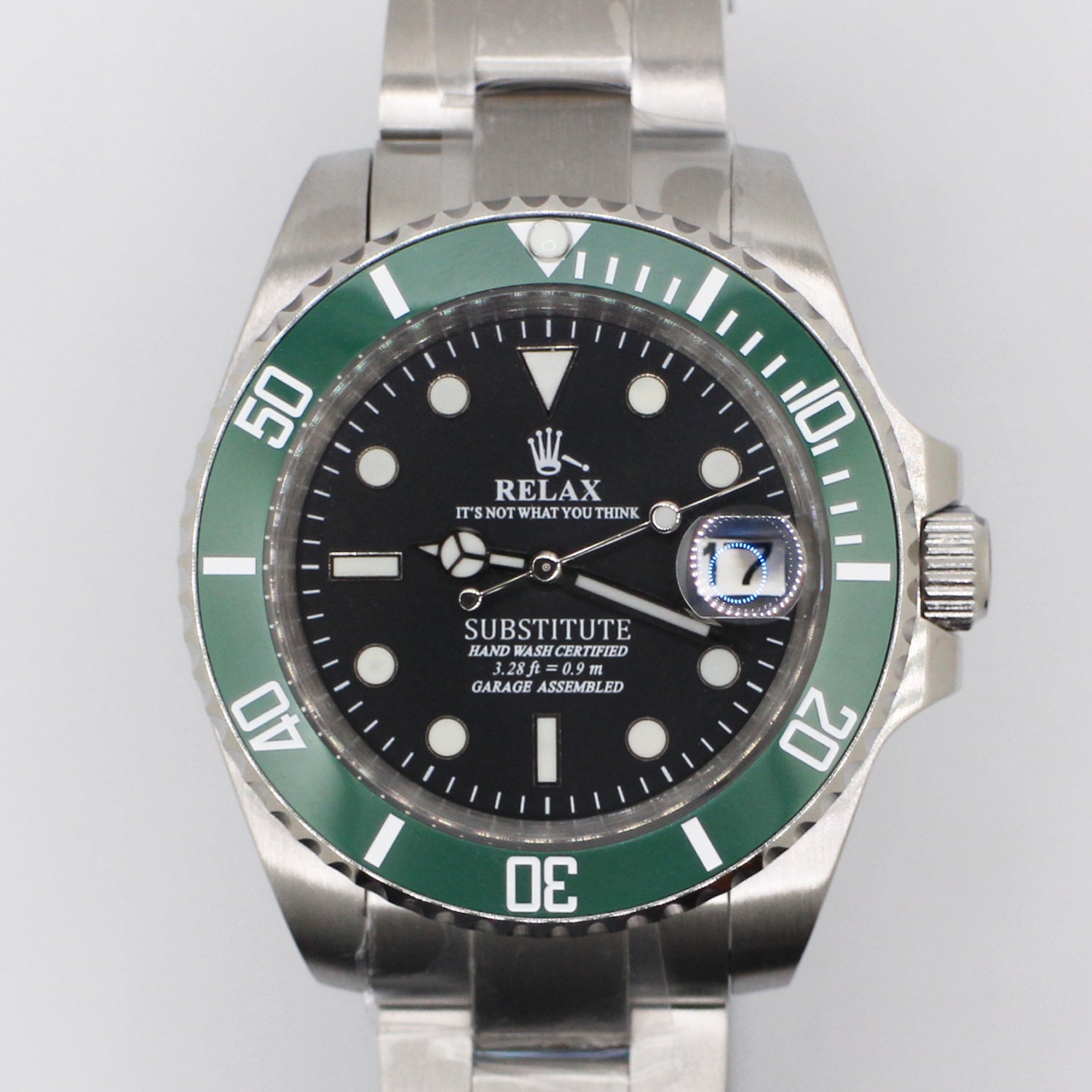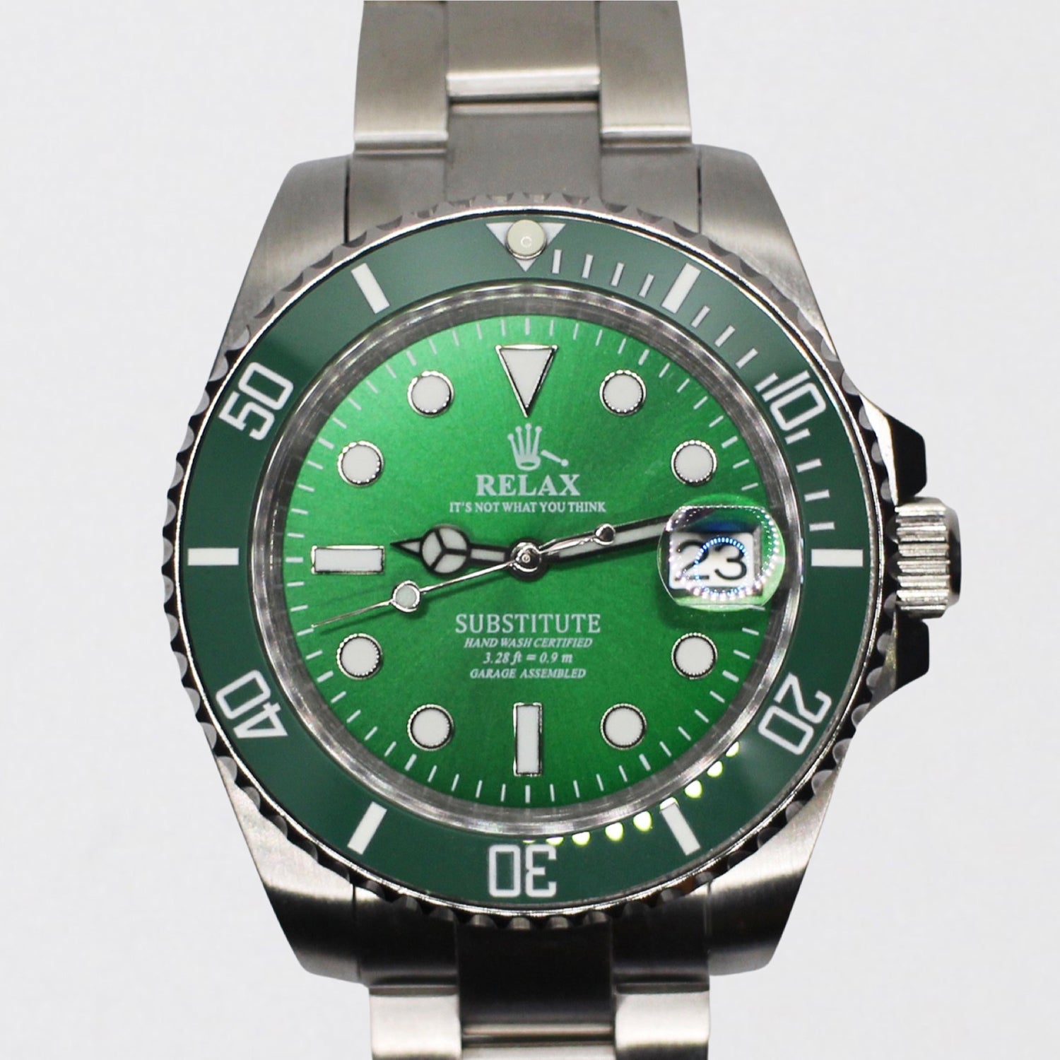 The design is based on of Rolex's most popular models: the Submariner. The Relax Submariner is powered by an affordable workhorse movement from Seiko: the Seiko NH35 automatic movement.